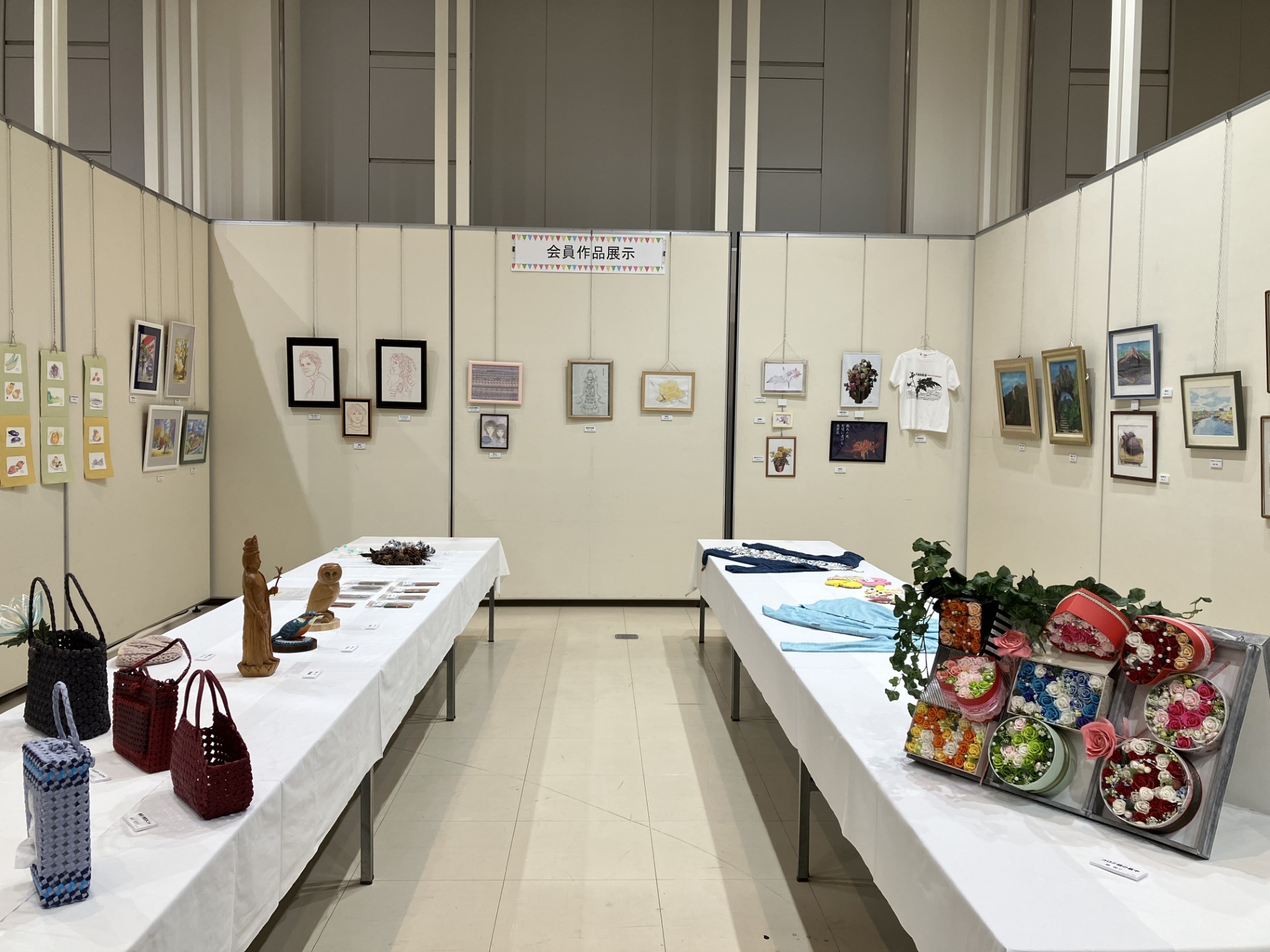 会員作品展示では、絵画や写真、小物など、魅力的な作品が多く出展されました。